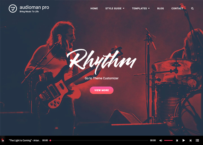 Audioman Pro is a well-designed, modern and trendy Premium Music WordPress theme built for musicians and bands that focuses on promoting their music and events. The theme is very easy to use and provides you with amazing musical features that help in building a complete and custom music website right away. Its homepage is dominated by your music logo, tagline, and an amazing header media option where you can choose an image or a video for your header. With features like events, featured video, font family options, gallery, header top playlist, hero content, playlist, portfolio, section sorter, team, testimonials, WPML ready, WooCommerce integration, and more give you plenty of customizing power. You can craft an outstanding WooCommerce marketplace to sell your music merchandise and provide a multi-language experience for your followers. All the built-in features and support you need as an artist or a band are included in Audioman Pro that flaunts your musical projects in an aesthetic manner that is easily attention-grabbing.
