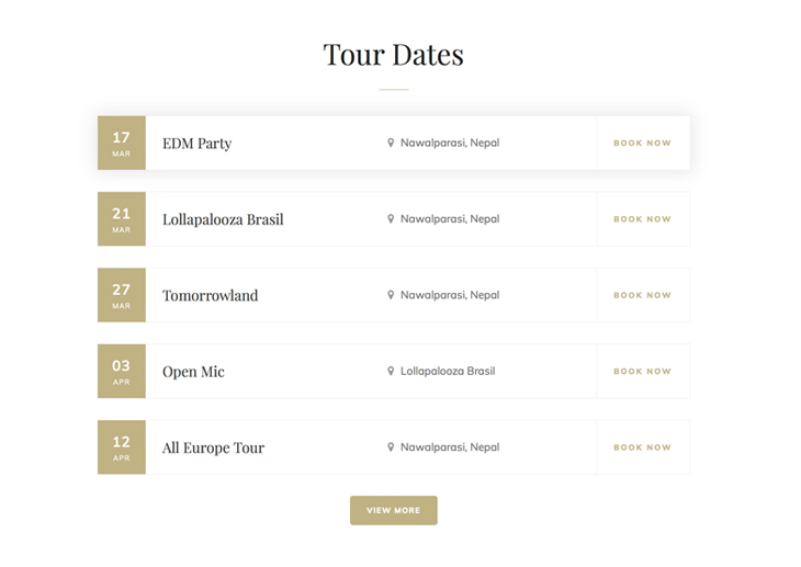 Tour Dates Layout Let your audience know about the musical events that you're already or going to be a part of.