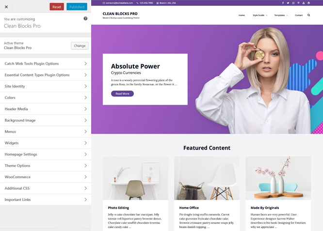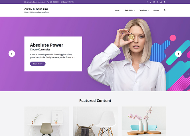 Clean Blocks Pro is a premium multipurpose Gutenberg WordPress theme that is creative, intuitive, and eye-catching. It is completely compatible with Gutenberg editor; it supports all Gutenberg blocks and is equipped with enhanced block styles. Like its name, the theme is simple, clean yet power packed with features to create modern and highly optimized websites of any kind. Amazing features like Font Family Options, Header Top Options, Hero Content, Logo Slider, Menu Options, Sections Sorter, Services, Stats, Team, Testimonials, and more have been added to Clean Blocks Pro. The process of realizing your ideas takes a minimal amount of steps, making sure you get the most out of Clean Blocks Pro without investing too much time and effort. It also supports all devices with modern browsers. Its advanced features and attention-grabbing outlook will surely serve you with the website you desire. The theme is translation-ready. Buy Clean Blocks Pro today!