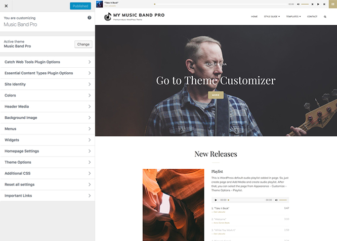 My Music Band Pro is an incredibly modern, keenly diverse, feature-rich and easy-to-use Premium Music WordPress Theme designed carefully especially for the musical artists and bands to promote their music and events. Music Band Pro provides your website with a musical vibe making it engaging and giving it a professional look. The theme is fully responsive and retina-ready; it gives your audience an excellent viewing experience, no matter what device they’re using. With features like events, header top playlist, featured slider, featured content, hero content, portfolio, playlist, promotion headline and more, My Music Band Pro gives you plenty of customizing power. You can create outstanding shopping and multi-language experience with WooCommerce and WPML integration respectively. My Music Band Pro has everything you need to get your name and voice out there, whether you are a solo music artist or a passionate music band. Use My Music Band Pro WordPress Theme and showcase your musical journey to the world! For any technical issue, please post in our support forum.