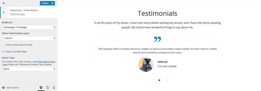 Note: To see changes in No of Slides please refresh the customizer page