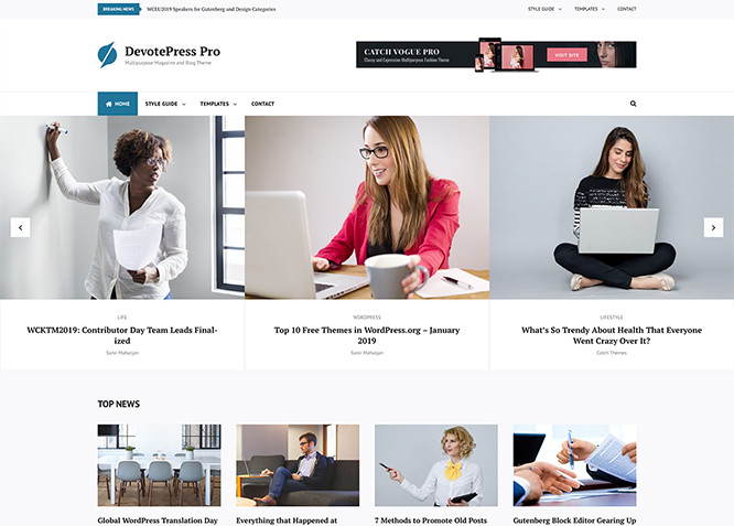DevotePress Pro is a clean, simple and elegant premium multipurpose magazine and blog WordPress theme that is extremely responsive and flexible to customize. Our online media portal, DevotePress is actually what inspired us to craft the theme of the same name. This online publication covers everything and anything related to WordPress. DevotePress Pro provides the audience with ultra-easy navigation and superior user experience. It provides a clean layout making your website eye-pleasing and visually aesthetic. It comes with features like Ads Section, Featured Two Columns, Featured Video, Header Highlights, Header Top Options, Interview, Menu Options, News Ticker, Portfolio, Promotion Headline, Scrolling, Service, Team, Top Reads, Trending, Two Columns, and more. All of these features are sure to lift your blog up and make it exclusive. Since it is a multipurpose theme, it is suited for websites of any kind. DevotePress Pro is a combination of simplicity, clarity, and ease of access, everything that a visitor would want from a decent magazine or blog. To top it all, the theme is translation ready.