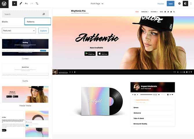 Rhythmic Pro is a clean and modern premium music WordPress block theme. This is a full-site editing music theme that comes with many unique customizable features and functionalities. It is a block-based theme perfect for musicians and bands to promote their music and events. The theme is an elegant yet simple design that lets you showcase everything that you have to offer. This theme is fully responsive and retina-ready which makes your music website absolutely beautiful and flawless. All the block patterns are simple and easy to use that lets you drag and drop the blocks easily and build the content. There are 28+ different block patterns, 21 FSE Templates, and 9 Template Parts. Some of the block patterns are Contact, Events, Playlists, Slider, Stats, Sticky Playlist, 404 Header with Background, Archive Header with Background, Archive Header, Footer with four columns, Header with Search Cart, Header With Social Search, Post Header With Background, Recent Blog, and many more. All the block patterns, templates, and templates parts are fully customizable and responsive. Buy Rhythmic Pro and promote your music.