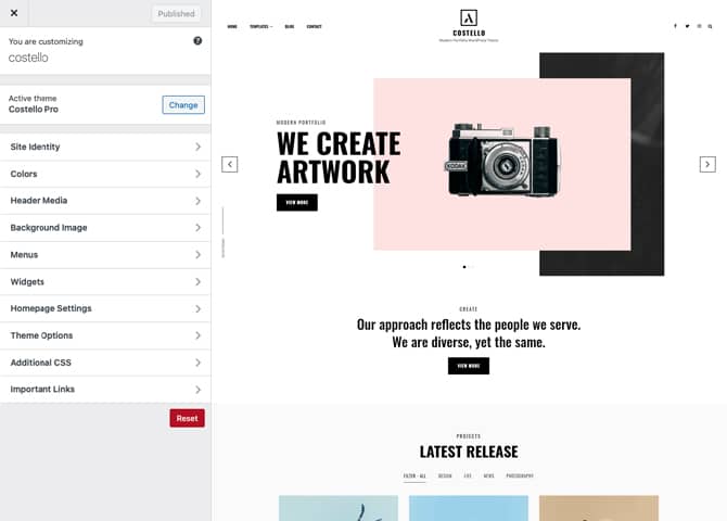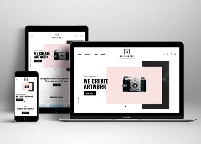 Costello Pro is a premium Modern Portfolio WordPress theme that comes with a modern responsive design and highly customizable features and functionalities. It is a great choice for all kinds of professionals to build a portfolio website. This premium, high-quality theme has a portfolio layout as well as many customizable sections that allow you to present your past projects and your agencies in the most visually-aesthetic manner. Costello Pro can be used by creative agencies, freelancers, photographers, illustrators, and similar professionals. Along with the responsive modern design, this theme also includes an extensive theme options panel that allows you to tweak colors, fonts, backgrounds, and more. Costello Pro comes with many highly customizable features and sections. For instance, Contact, Color Options, Fit Vid Option, Logo Slider, Menu Options, Portfolio, Promotion Headline, Promotion Video, Services, Stats, Team, Testimonials, and more. All of these mentioned sections are fully responsive and looks absolutely stunning across all devices. In addition, you can also add in your featured sliders and galleries. Costello Pro is the best modern Portfolio WordPress theme to display your portfolio with the highest quality and finest flexibility.
