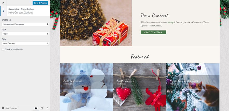 - Go to “Appearance => Customize => Theme Options => Hero Content Option”