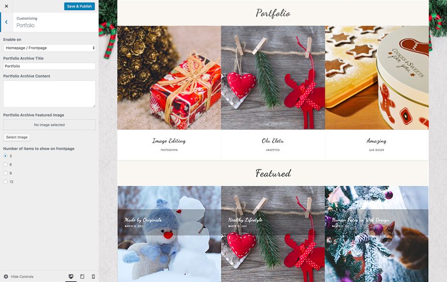 - Then go to “Customize => Portfolio” and choose number of items to show in frontpage