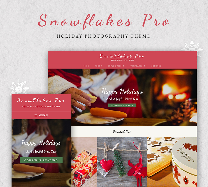 Snowflakes Pro is a modern Christmassy photography WordPress theme that provides high-quality features with minimal design. It is the child theme of our popular photography WordPress theme, Fotografie Pro. The theme is simple, clean and gives your website a warm and welcoming look of Christmas with its vibrant color palette. Snowflakes Pro is a visually charming and impressive, graphically polished and seamless, engaging and dynamic, deeply creative and very easily customizable seasonal WordPress theme. The theme comes with basic features that are extremely crucial for your photography website, such as header media options, hero content, color scheme, featured content, featured slider, and more. All the power-packed features in Snowflakes Pro will definitely live up to your expectations from a creative Christmassy photography WordPress theme. So, give your photography website a warm festive look this Christmas with our new seasonal photography WordPress theme. The theme is extremely responsive and functions beautifully across all devices. To top it all, the theme is translation ready.
