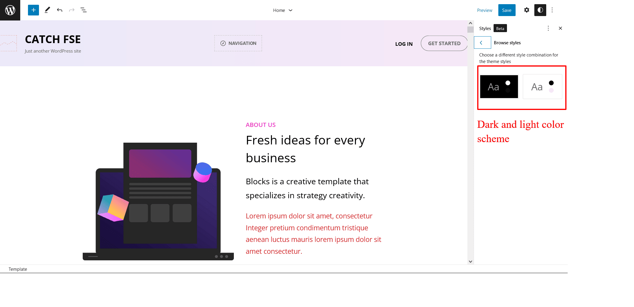 To change color scheme of whole theme choose Default (dark scheme) or Light
