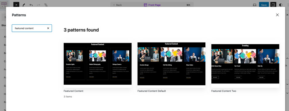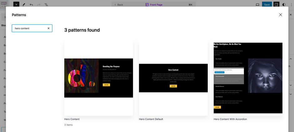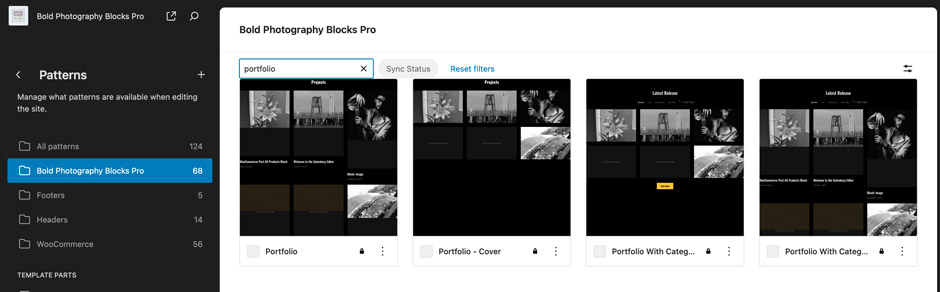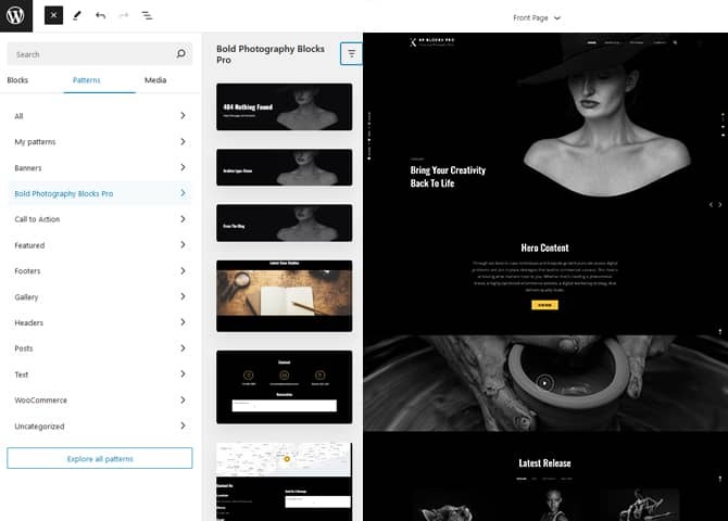 Here is the list of Patterns Bold Photography Blocks Pro supports including patterns from FSE Pro Plugin.