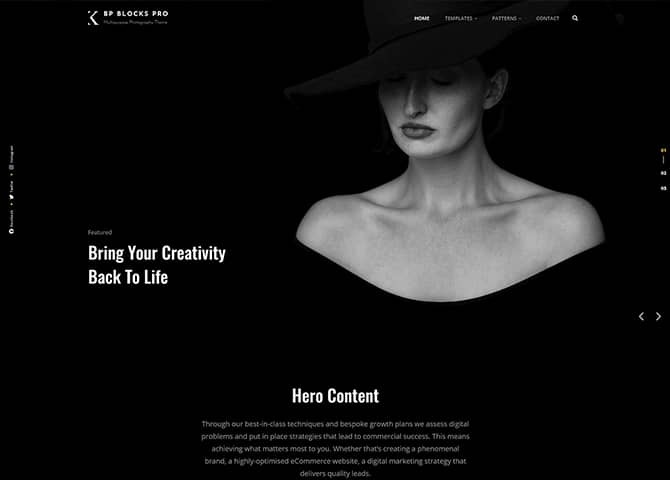 Patterns in Bold Photography Blocks Pro are predefined list of in built sections. Patterns are built with different type of blocks.