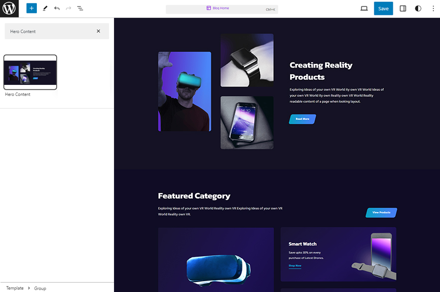 Comes with a collection of predefined block design layouts, available from the patterns tab of the block inserter. Create an elegant layout that combines different blocks. Build Gracefully!