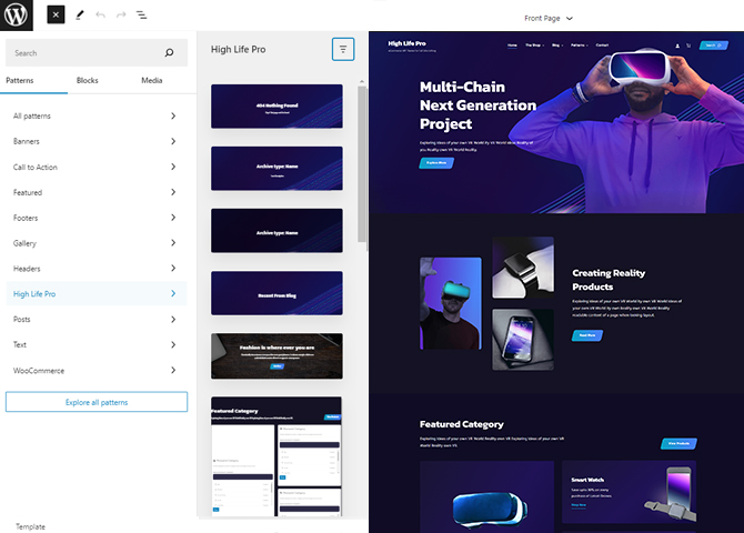 High Life Pro of Featured content pattern, this pattern can be used to highlight the desired content with description and image.