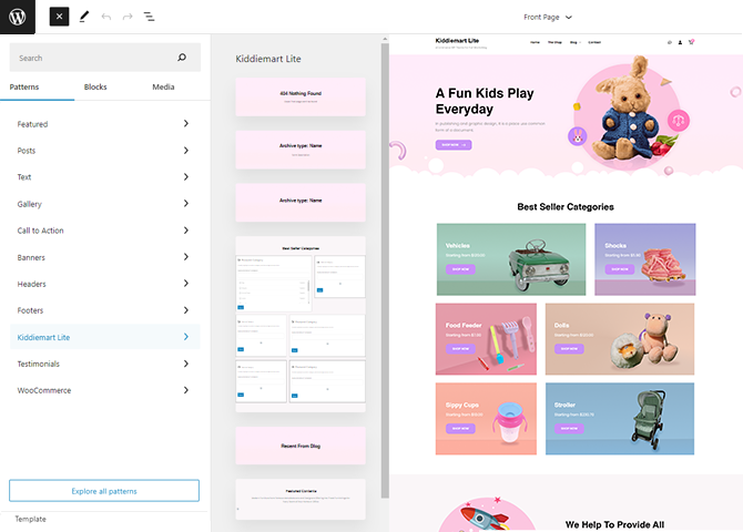 Kiddiemart Lite is a free lightweight eCommerce WordPress block theme for full site editing. This block-based theme is perfect for setting up a clothing or toy store for kids. This theme is a modern WooCommerce theme that includes all the necessary pages allowing you to customize and sell the products. It comes with a beautiful layout that will make your online presence exciting and dynamic. With its advanced features, it is best suited for building a WooCommerce-based website. You can use Kiddiemart Lite to display your services, store inventory, gallery, blog, and fashion news on many pre-designed pages. Therefore, there are 17+ block patterns, 19 Templates, and 11 Templates Parts available in this theme. Some of the block patterns are 404 Header, Archive Post Header, Best Seller Category, Blog Header, Featured Content, Footer Three Columns, Header Media With Patterns, Hero Content, Post Header, Search Header, Shop Header, and many more. All the block patterns, Templates, and Template Parts are highly customizable, extremely fast loading, and fully responsive. Fascinate your visitors with mesmerizing visuals and seamless functionality with Kiddiemart Lite