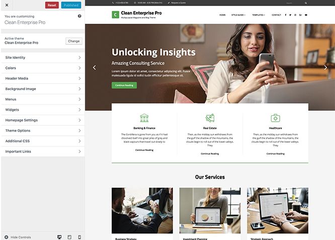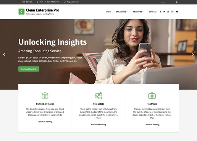 Clean Enterprise Pro is a responsive premium corporate WordPress theme crafted for businesses of all kinds. It has been designed to perform at a professional level across a broad spectrum of interests and industries. This versatile corporate theme can adapt to any market niche and provides an accessible and intuitive interface. The theme is suitable for any types of brand, company, organization or causes. Blogs and shops, professional portfolios and corporate websites, Clean Enterprise Pro has the resources to tackle them all. Clean Enterprise Pro includes basic features like Contact Info, Font Family Options, Footer Editor Options, Header Options, Hero Content, Menu Options, News, Portfolio, Promotion Headline, Service, Sections Sorter, Stats, Team, Testimonials, Why Choose Us, and more. The theme supports WPML compatibility, which makes it easier for you to reach your audience across the globe in no time. All of these features have been added prioritizing all kinds of businesses. With a clean and minimal design, Clean Enterprise Pro satisfies your needs and requirements no matter what website you own. Play around the features and introduce your creative touch with Clean Enterprise Pro.