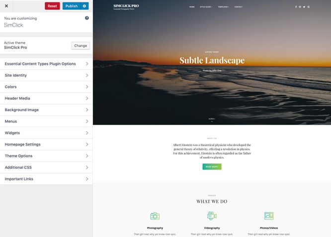 SimClick Pro is a premium, responsive Corporate Photography WordPress theme. The minimal design in SimClick Pro makes your photography website look clean, simple, and visually aesthetic. It is ideal for photographers, photo bloggers, art portfolio, freelancer, and other creative photography related website. You can use the theme either for personal use or for corporate photography websites. SimClick Pro includes all the features that are crucial for any personal or corporate photography WordPress website. For instance, Color Options, FAQ, Gallery, Hero Content, Logo Slider, Portfolio, Promotion Headline, Services, Stats, Team, Testimonials, and more. With these exciting features, SimClick lets you highlight your special contents, categorize them elegantly and show your expertise. Flexible features, clever widgets, useful shortcodes, elegant layouts, or a clean design, SimClick has it all. The theme is super user-friendly, has a very easy working interface and saves so much time with zero need for coding. The theme is absolutely responsive and adapts all screen sizes.
