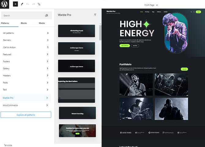 Warble Pro - Music WordPress eCommerce Block Theme Template Parts