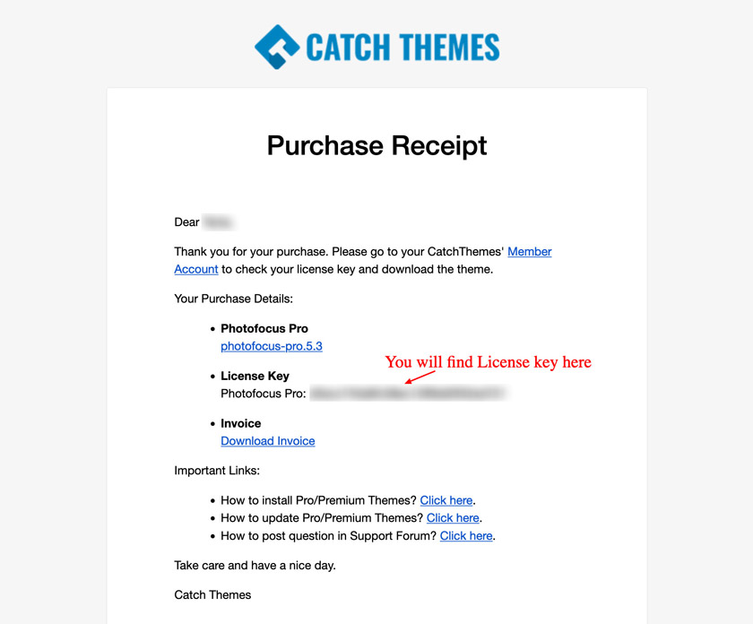 - Note: Please check your spam/junk folder for email. Also, if you don’t get email confirmation then please contact us at https://catchthemes.com/contact-us/